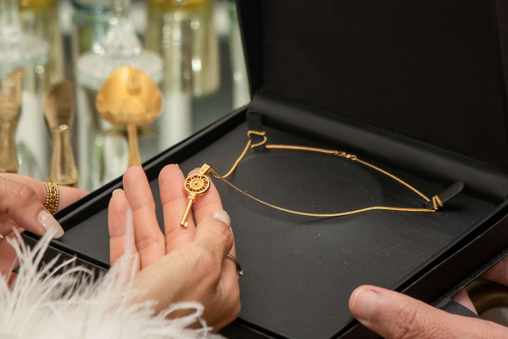 - Joya de oro, cubierta en oro o plata en forma de llave.